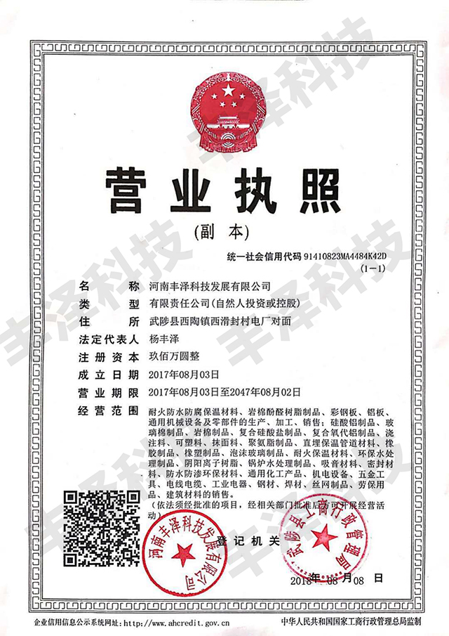 河南豐澤科技發(fā)展有限公司,是一家專業(yè)從事巖棉建筑保溫材料,集開(kāi)發(fā)、科研、生產(chǎn)、銷售于一體的大型企業(yè)。本公司于2017年建廠,廠址位于河南省焦作市武陟縣。地理位置優(yōu)越,交通便利,產(chǎn)品遠(yuǎn)銷河南、山東、河北、山西等,擁有高檔出口巖棉生產(chǎn)能力,產(chǎn)品遠(yuǎn)銷澳洲、東南亞地區(qū)。